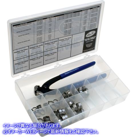 Convenient kit includes 80 pieces of hardware a Motion Pro Side Jaw Pincer tool and a convenient fuel line clamp size chart Specially formed strip edges reduce the risk of damage to the part being clamped Narrow 5mm wide band provides concentrated seal compression 360° Stepless? design with no gaps on inner surface Specially formed strip edges reduce the risk of damage to the part being clamped Lightweight design Tampering is visible Kit includes 10 each of the clamps listed below in a convenient storage box Individual clamp sizes available separately in 10-pack for restocking