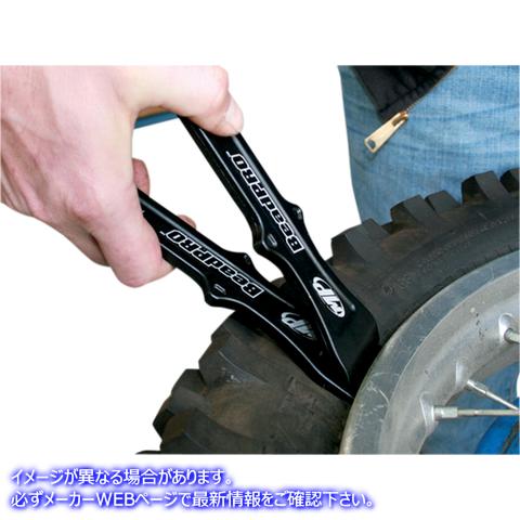 Breaks the bead on most street and off road motorcycle tires Integrated tire spoons for tire removal and installation Breaks the bead on most street and off road motorcycle tires Integrated tire spoons for tire removal and installation Light weight and compact size is perfect for tool packs Ergonomic handles with crossguard to keep hand from riding forward Forged 7075-T6 aluminum construction for strength and durability Black anodized finish Patent pending