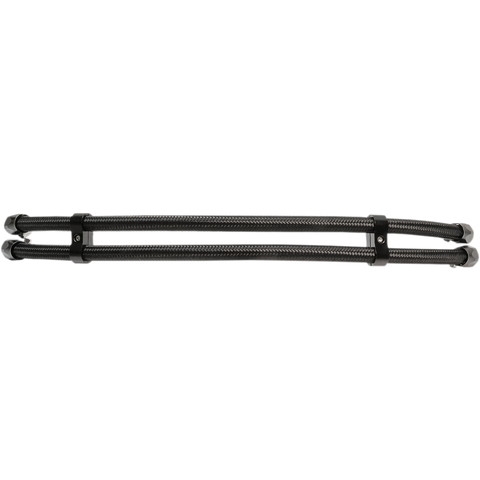 OIL HOSE UPGRADE KITS Sets your bike apart and gives your Jagg oil cooler a racy look with performance braided oil hoses straight from the track-ready line of Susa's motorsport division Choice of bright stainless-steel braided 6' hose or black lightweight fiber braided 6' hose Kit includes two aluminum hose separators in matching color and four aluminum hose finishers with integrated worm-drive clamps in matching color Installs easily; simply trim hose to required length slip hose finishers over ends of hose press hose onto nipple and tighten hose clamp to achieve an easy and beautiful upgrade Made in the U.S.A.